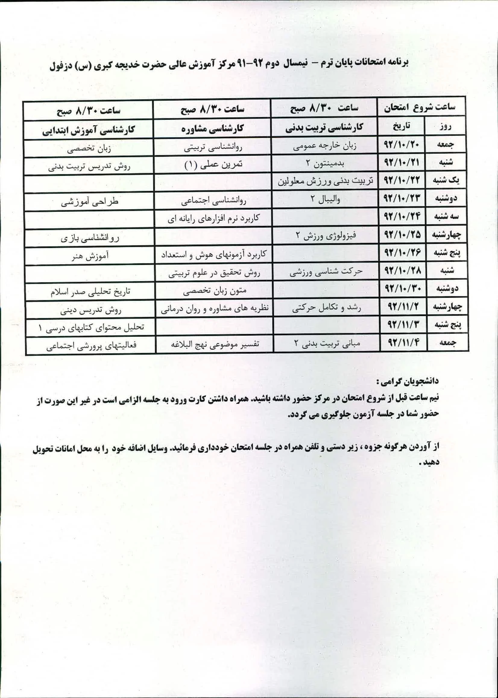 مرکزآموزش عالی حضرت خدیجه کبری (س) دزفول