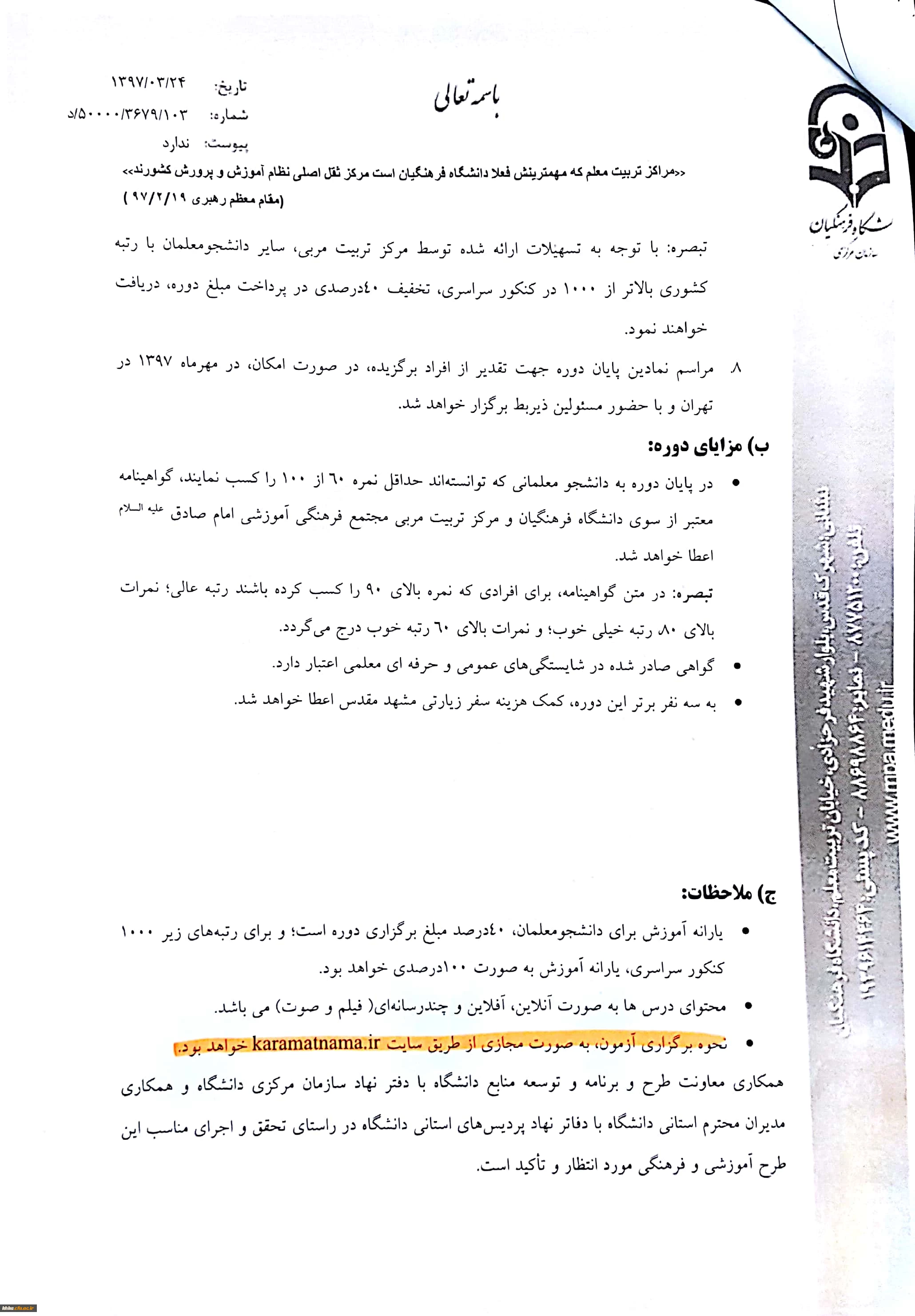 مرکزآموزش عالی حضرت خدیجه کبری (س) دزفول