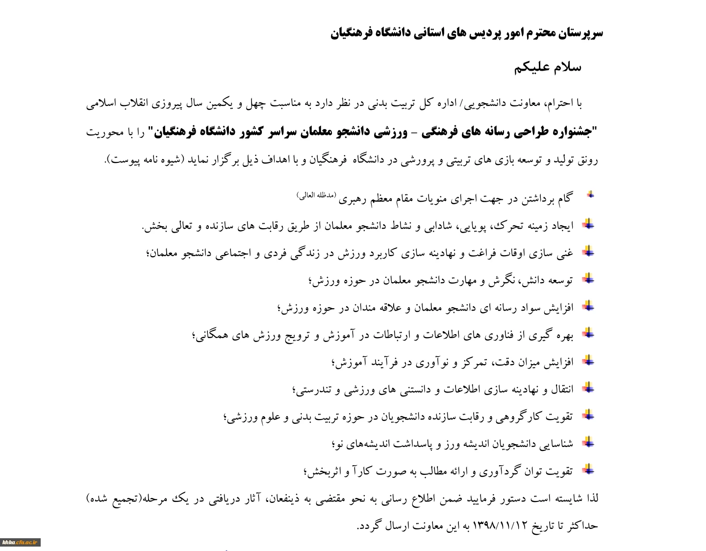 جشنواره طراحی رسانه های فرهنگی- ورزشی دانشجومعلمان سراسر کشور دانشگاه فرهنگیان 2