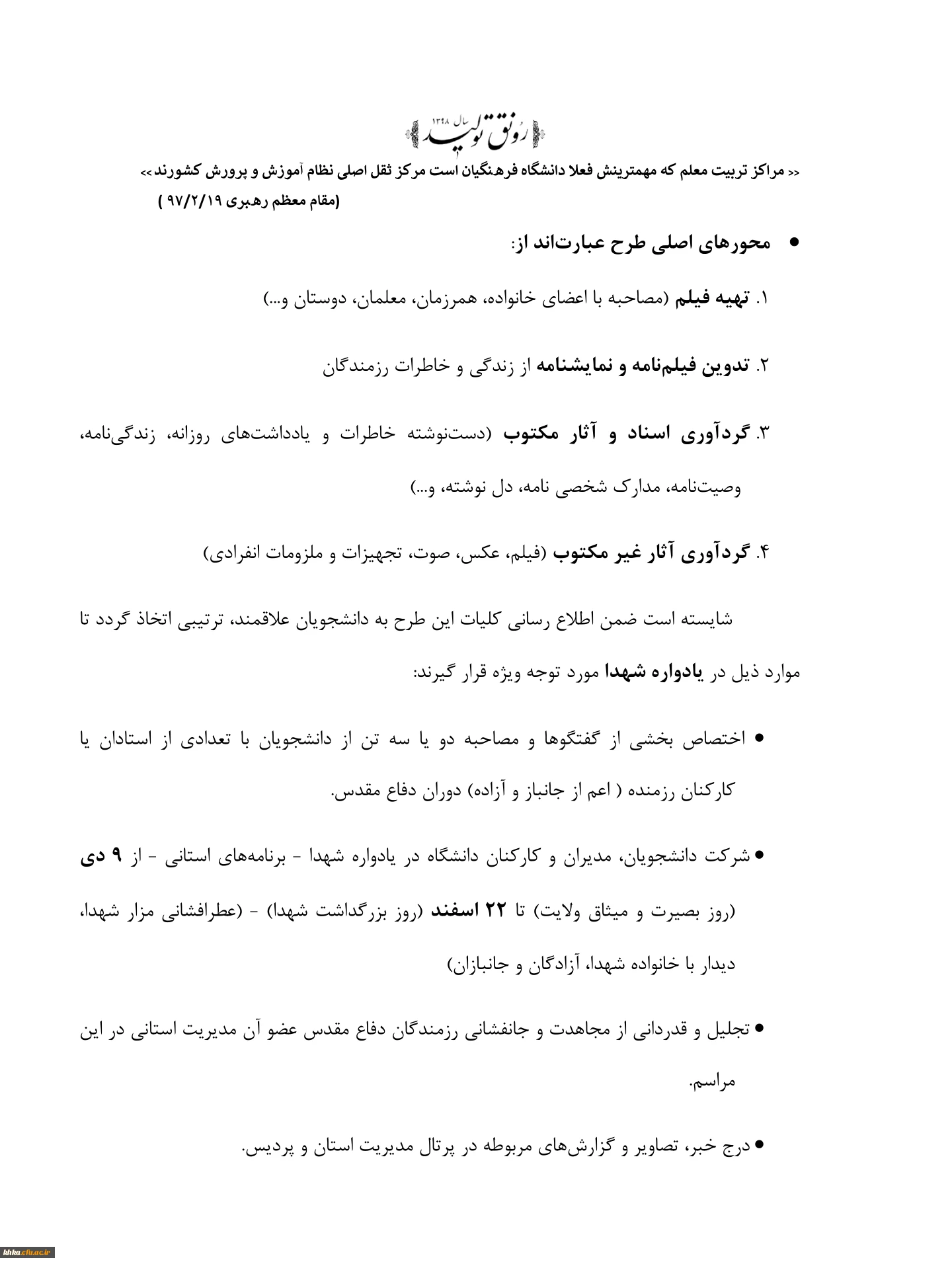 طرح مستند سازی و ثبت آثار و خاطرات شهدا و رزمندگان معلم و دانشجومعلمان دوران دفاع مقدس 3