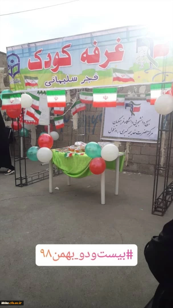برپایی غرفه کودک با همت اعضای فعال بسیج دانشجویی مرکز حضرت خدیجه کبری (س) دزفول به مناسبت گرامیداشت یوم الله 22 بهمن و بزرگداشت چهلمین روز شهادت سردار بزرگ اسلام حاج قاسم سلیمانی 2