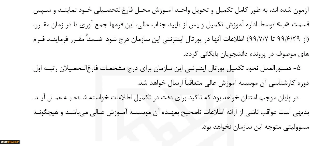 بخشنامه دانش اموختگان رتبه اول کارشناسی برای شرکت در ازمون ورودی مقطع کارشناسی ارشد ناپیوسته سال ۹۹ 3