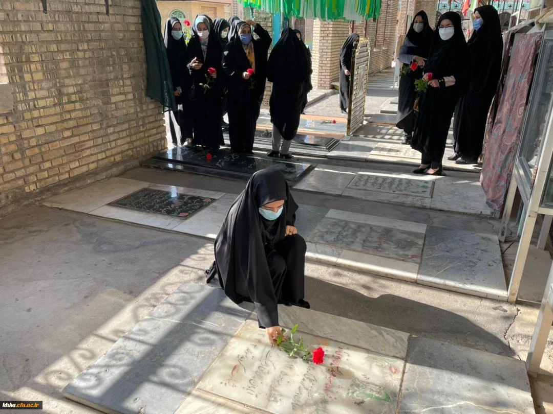عطر افشانی وگلباران مزار شهدای شهر دزفول توسط پرسنل و دانشجویان مرکز آموزش عالی حضرت خدیجه کبری(س) به مناسبت 13 آبان 2