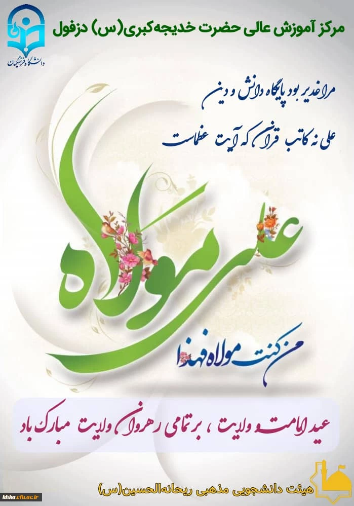 پیام رئیس مرکز آموزش عالی حضرت خدیجه کبری(س) دزفول به مناسبت عید سعید غدیر 2