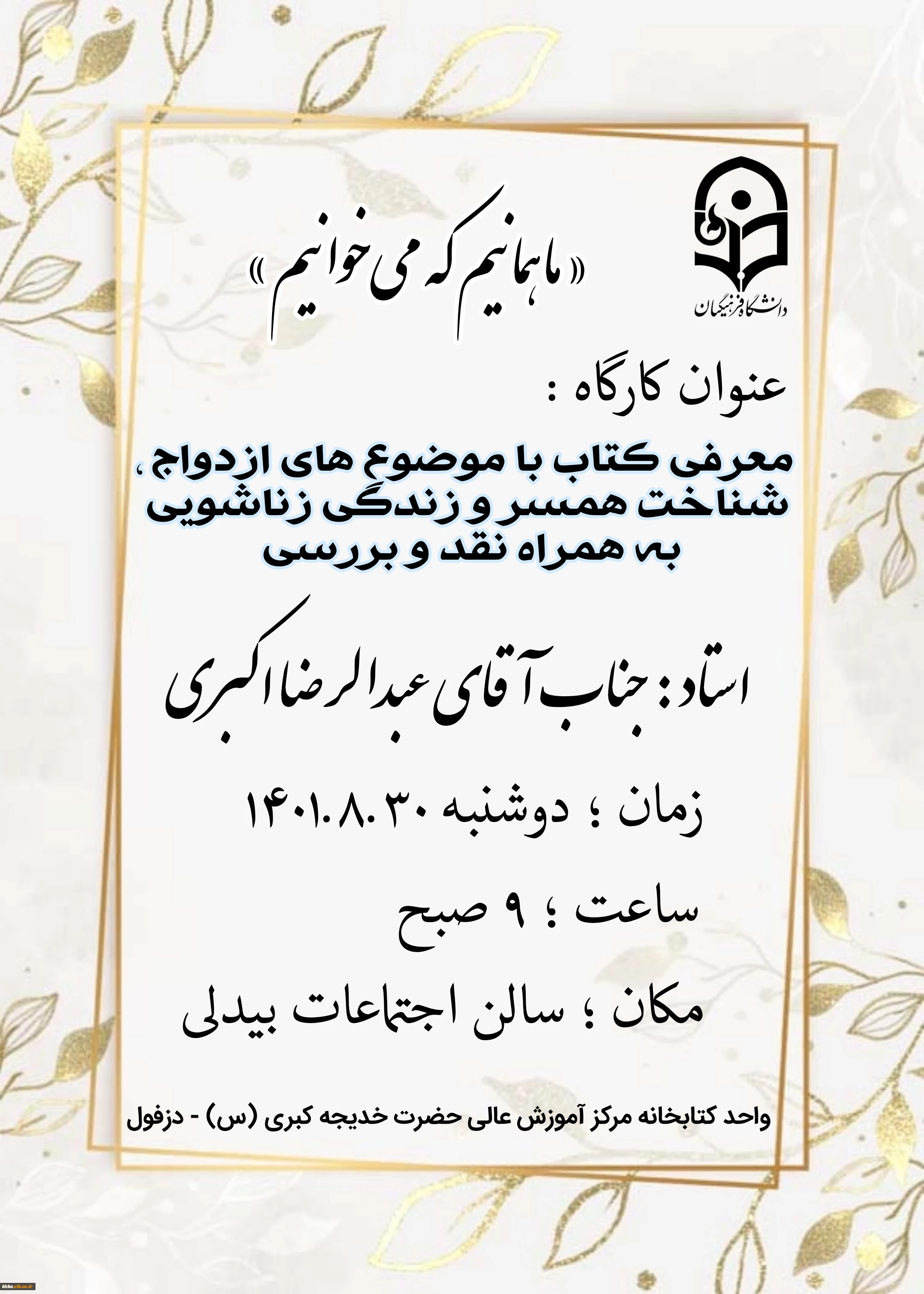 برگزاری کارگاه معرفی کتاب با موضضوع های ازدواج، شناخت همسر و زندگی زناشویی به همراه نقد و بررسی 5