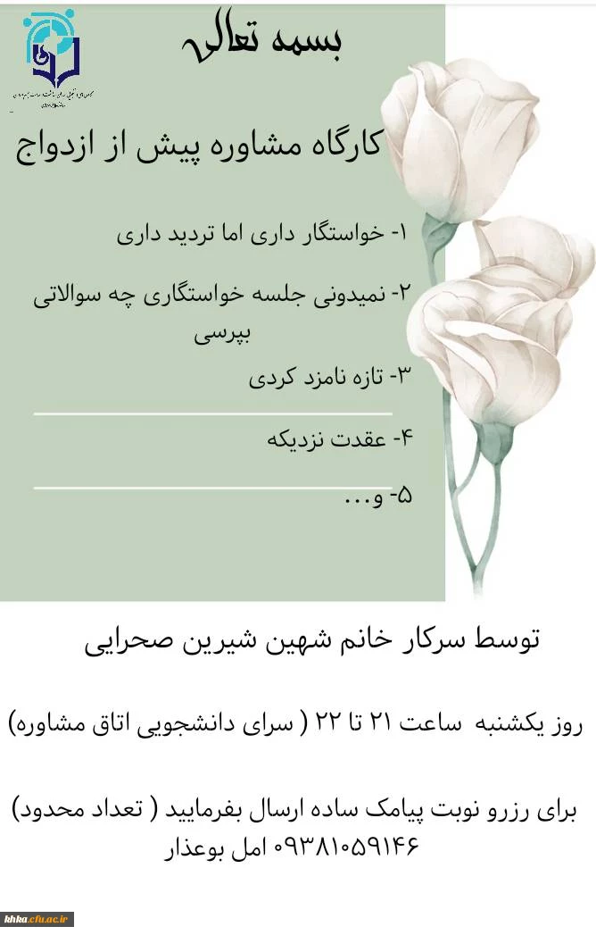 برگزاری کارگاه مشاوره پیش از ازدواج به مناسبت گرامیداشت هفته بهداشت روان 2