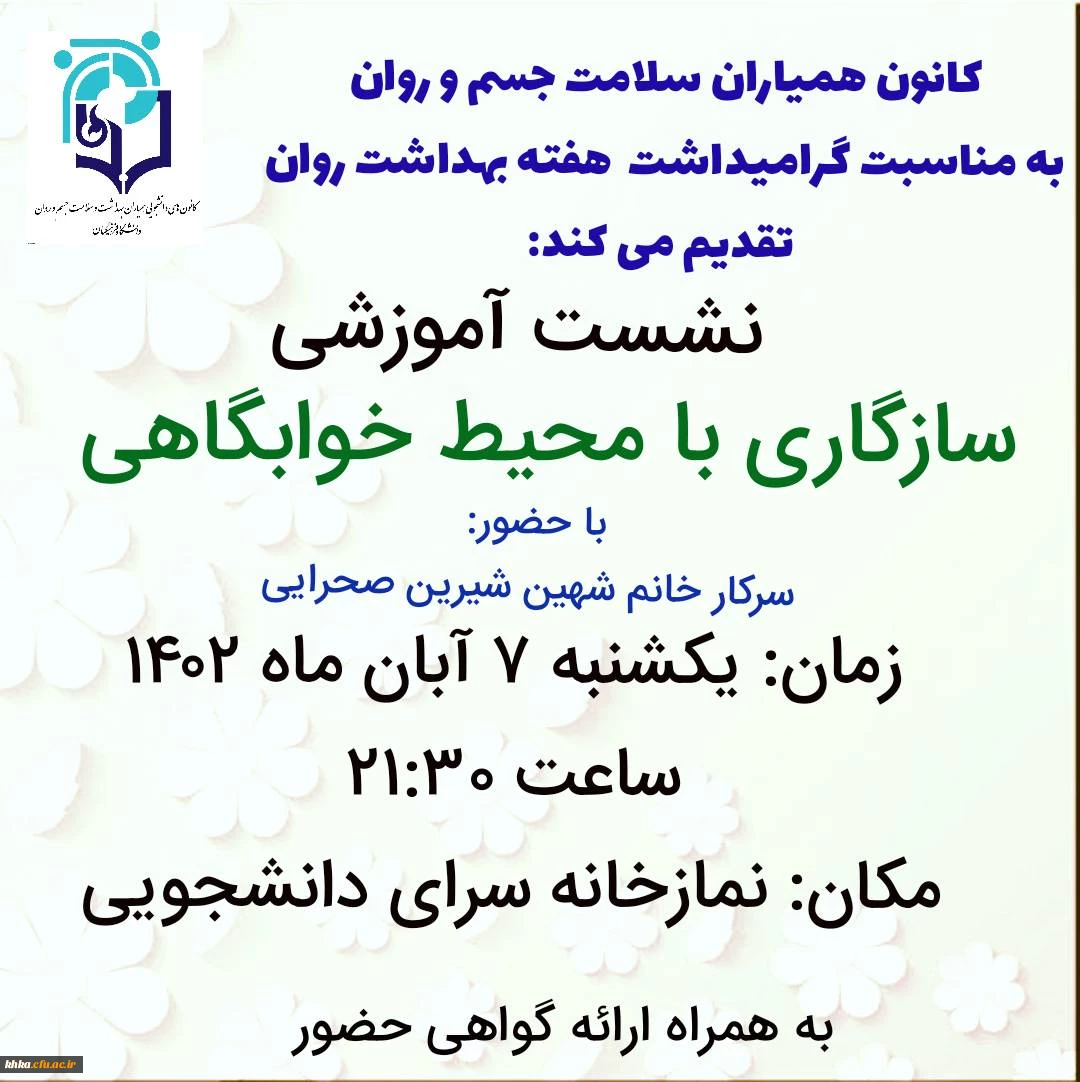 برگزاری نشست آموزشی با عنوان سازگاری با محیط خوابگاهی به مناسبت گرامیداشت هفته بهداشت روان 8