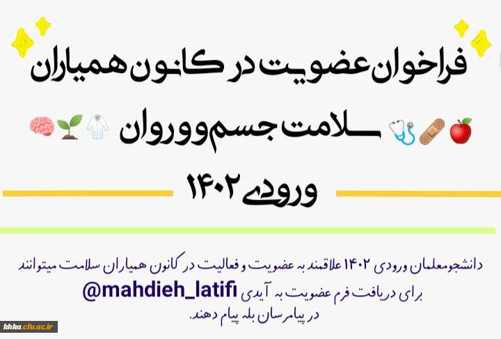 فراخوان عضویت در کانون همیاران سلامت جسم و روان 2