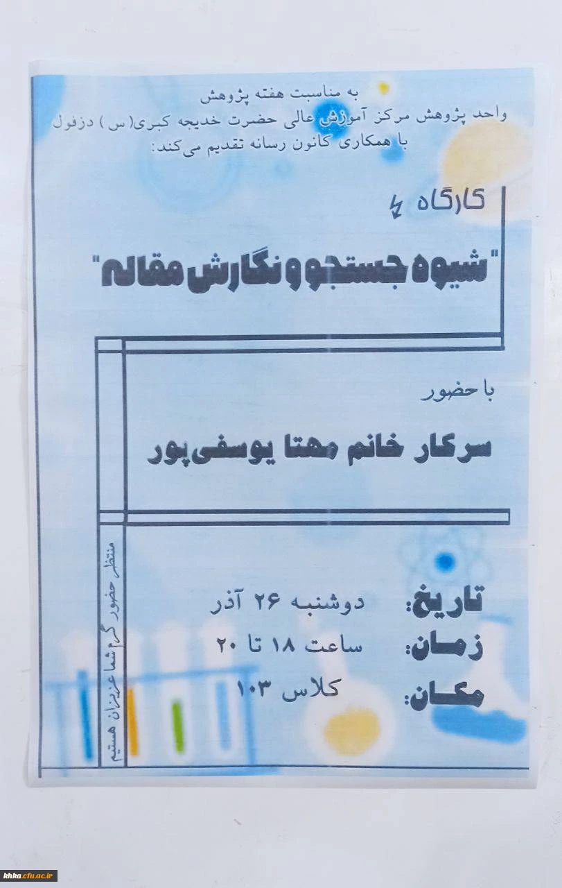 برگزاری کارگاه شیوه جستجو و نگارش مقاله 2