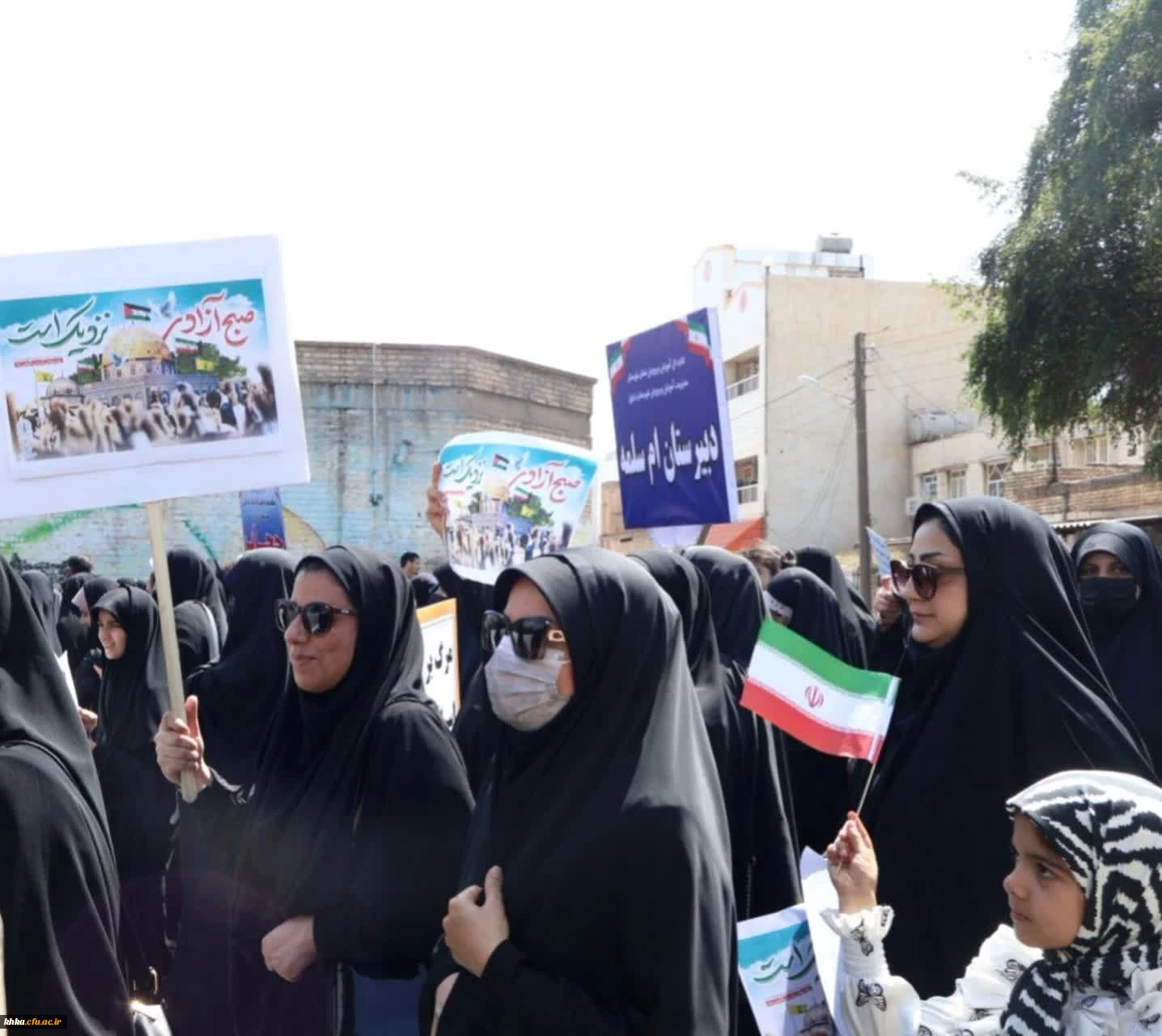 حضور پرشور جمعی از کارکنان، اساتید و دانشجومعلمان مرکز آموزش عالی حضرت خدیجه کبری(س) دزفول در راهپیمایی روز قدس 5