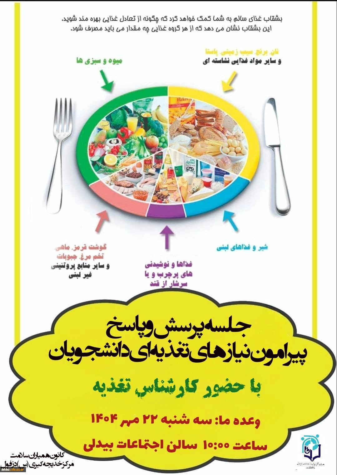 امتیاز دهید : کارگاه آموزشی و جلسه پرسش و پاسخ پیرامون نیازهای تغذیه ای دانشجویان 2 پنجشنبه 24 مهر 1404 ساعت 14:38