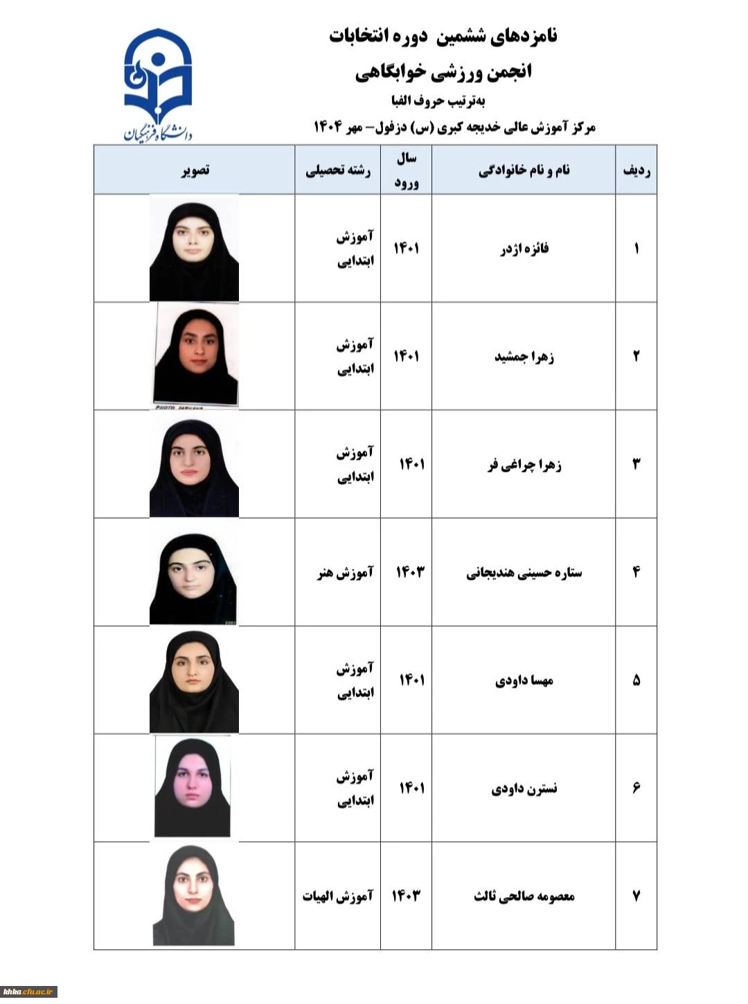 اطلاعیه شماره ۲: اعلام لیست کاندیدهای ششمین دوره انتخابات انجمن ورزشی خوابگاهی 2