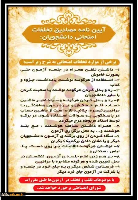 آیین نامه مصادیق تخلفات امتحانی دانشجویان 2